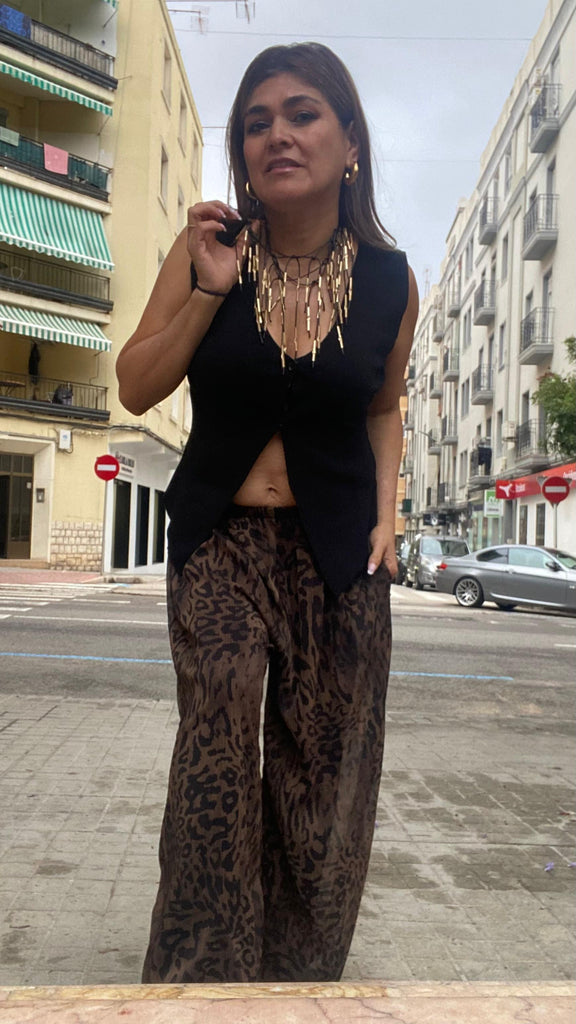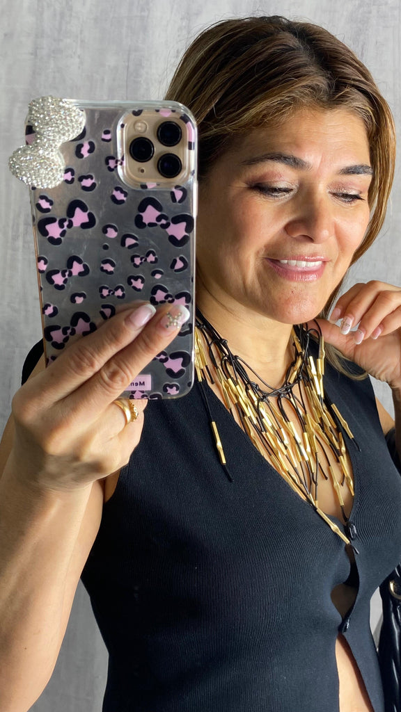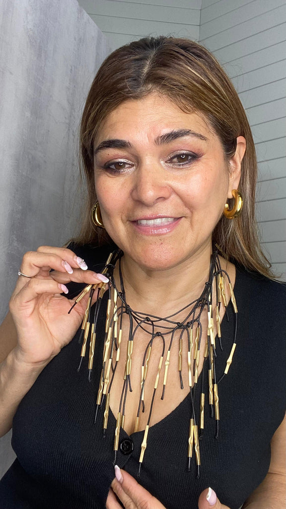 Collar dorado corto combinado en piel