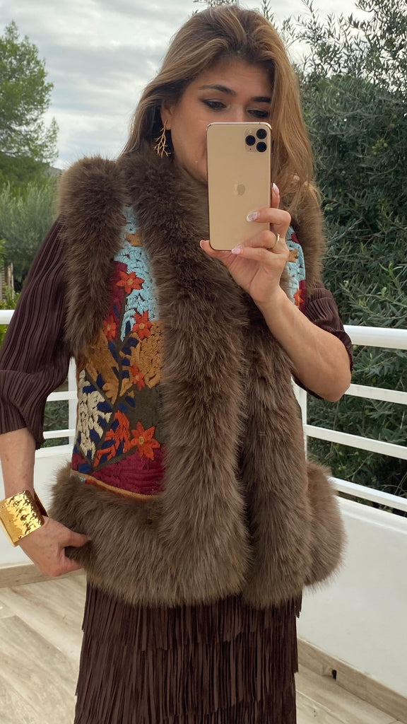 Chaleco bordado Camila con pelo natural (todo bordado)