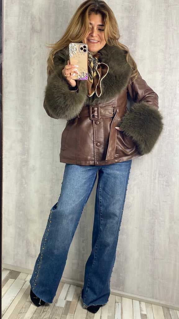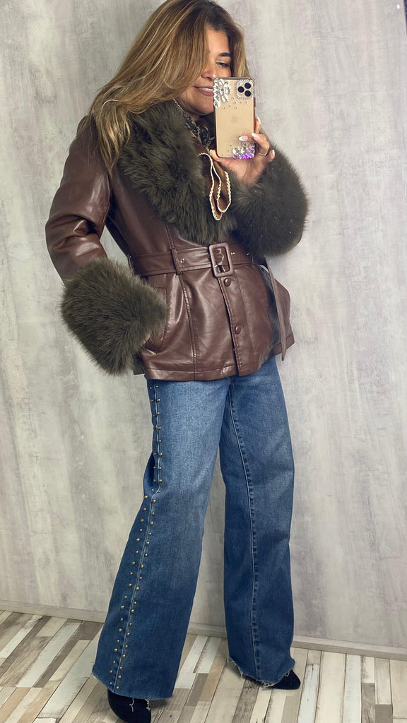 Chaqueta de polipiel marrón chocolate afelpadla