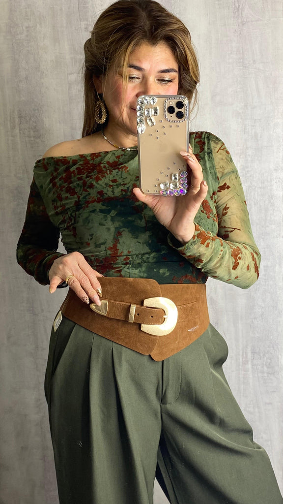 Cinturón elástico ancho de antelina (tiene un largo de 80cm)