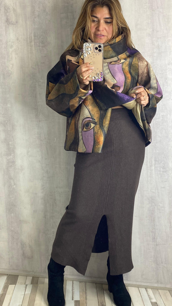 Falda de punto en marrón chocolate