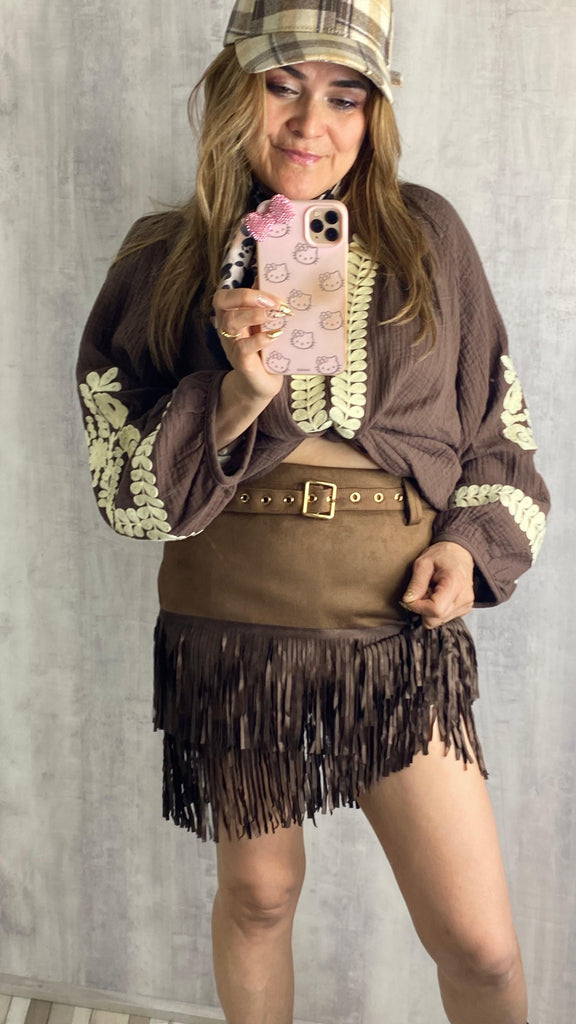 Falda pantalón de antelina con flecos