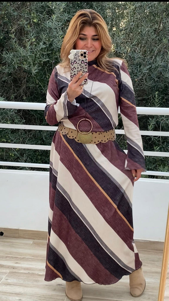 Vestido largo a rayas de punto elástico (es largo y calentito y muy agradable al tacto)
