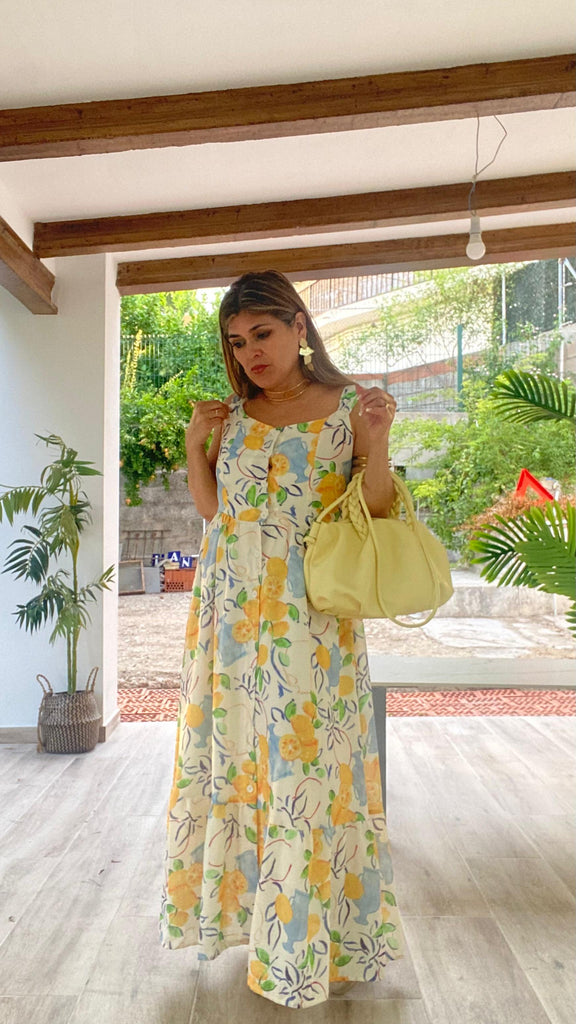 Vestido largo de lino estampado de limones