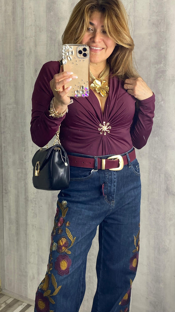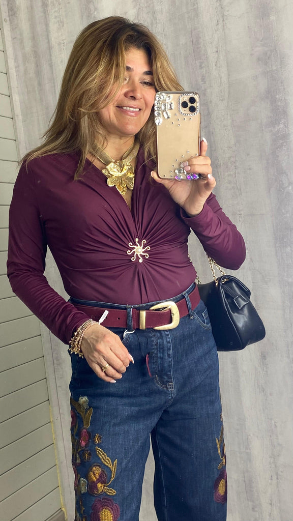 Bodi elástico granate escote en pico