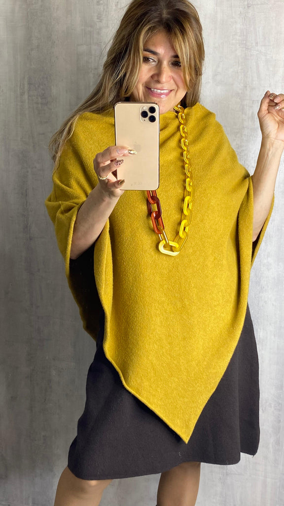 Poncho de punto en amarillo mostaza